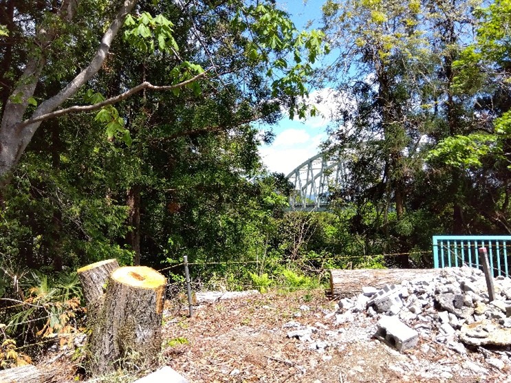 A bear was seen walking on the road in front of our Chichibu Branch in the winter. Supposing that the animal might have come to eat chestnuts bore in our site, we decided to cut the tree. When we did it, a bridge appeared from behind the woods.